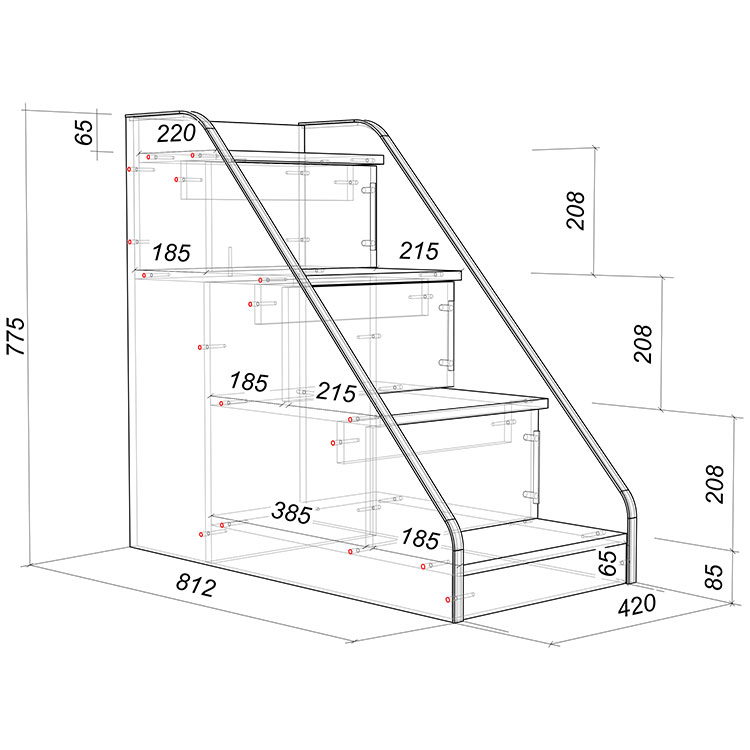 Лестница укомплектована фасадами ,чтобы получились полноценные полки с дверками как дополнительное место для хранения.